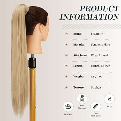 FESHFEN Posticci per capelli Extension Coda Di Cavallo Capelli Biondo cenere Lunga Estensione Capelli sintetica a coda di cavallo lunga e dritta 70cm, 150g