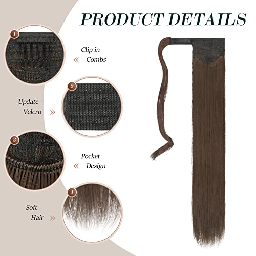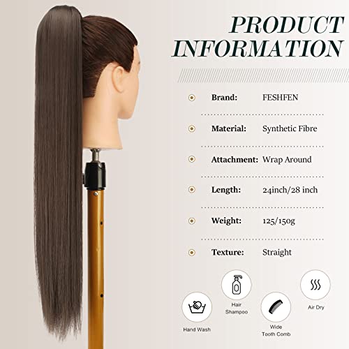FESHFEN Posticci per capelli Extension Coda Di Cavallo Capelli Castano Medio Lunga Estensione Capelli sintetica a coda di cavallo lunga e dritta 70cm, 150g