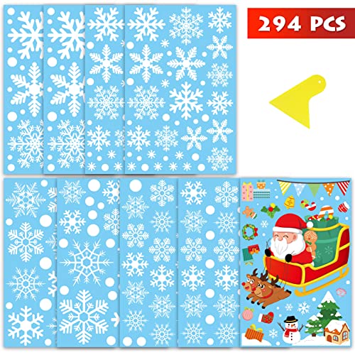 Fesoar 294 Pezzi Vetrofanie Natale Adesivi Finestre Finestra Decorazione Casa Fiocco di Neve Rimovibile (Natale 3)