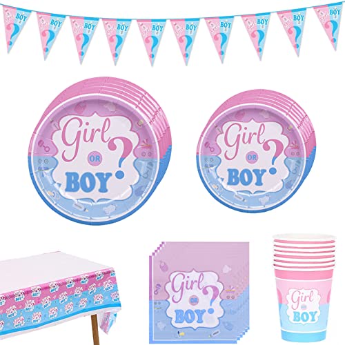 Festa Decorazione Kit,42 Pezzi Baby Reveal Forniture per Feste,Decorazione per Feste di Genere,Boy or Girl Stoviglie,per Baby Shower Compleanno Feste di Nozze Decorazioni(Serve 8 Ospiti)