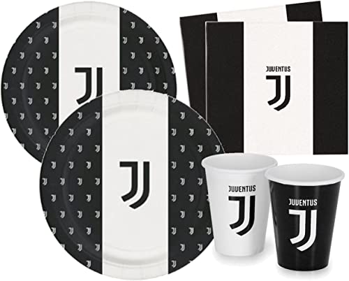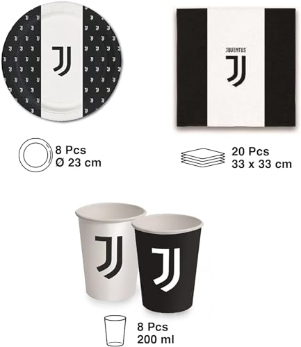 Kit Festa 8 Persone Set Tavola Addobbi Party Compleanno con 8 Piatti, 8 Bicchieri e 20 tovaglioli - per JUVENTUS