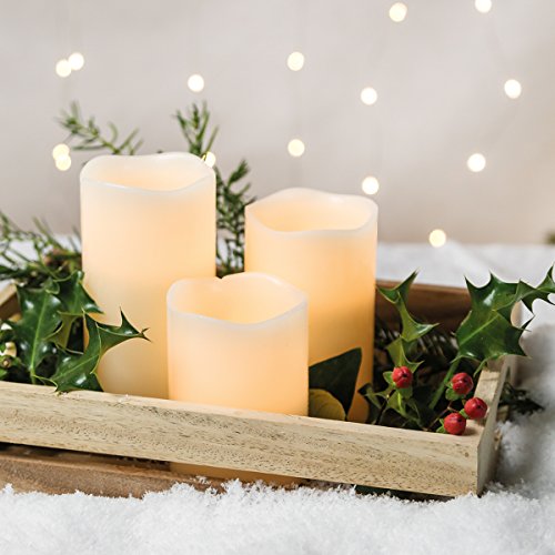 Festive Lights, 3 candele di cera vera, profumate alla vaniglia, con LED ad effetto tremolante, con telecomando Rund