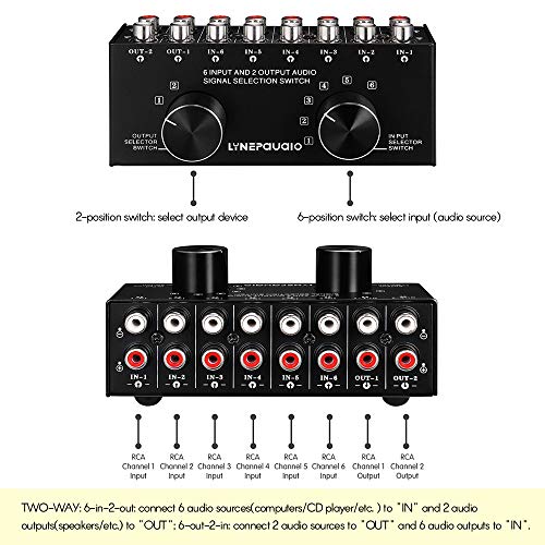Festnight 6-In-2-Out Audio Switcher Distributore splitter box selettore segnale audio bidirezionale con ingressi e uscite RCA
