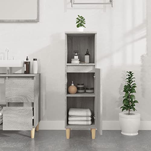 Festnight Armadietto da Bagno, Mobile Bagno Colonna, Mobile Bagno Salvaspazio in Legno Multistrato Grigio Sonoma 30x30x100cm