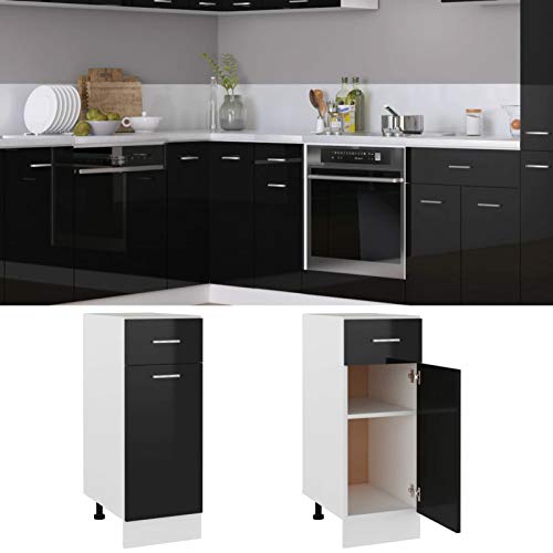 Festnight Armadio da Cucina, Armadio Cucina Monoblocco, Credenza Cucina, Mobile Cucina Credenza, in Truciolato 30x46x81,5 cm Nero Lucido