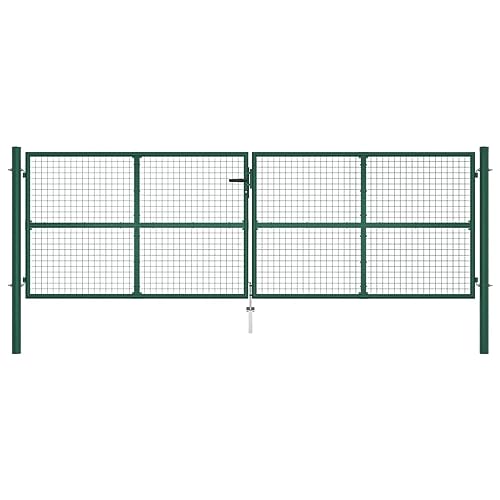 Festnight Cancello da Giardino a Rete Cancello per Recinzione Doppio in Acciaio Rivestito a Polvere 400x75 cm/ 400x125 cm Verde
