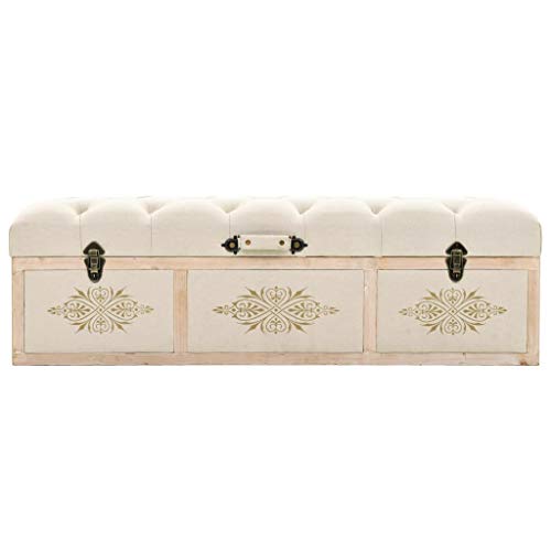 Festnight Cassapanca Contenitore con Seduta in Legno Massello e Tessuto 120x32x38 cm