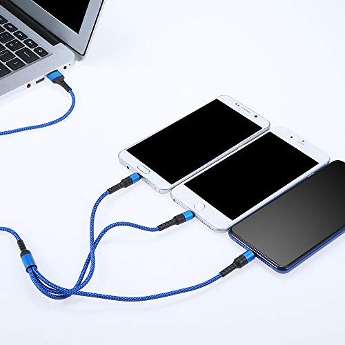 Festnight Cavo di Ricarica 3 in 1 Multi Cavo di Ricarica Intrecciato in Tessuto con Connettore per Cavo di Ricarica Rapido USB/Type-c/Lighting per Smart Phone (Blu)