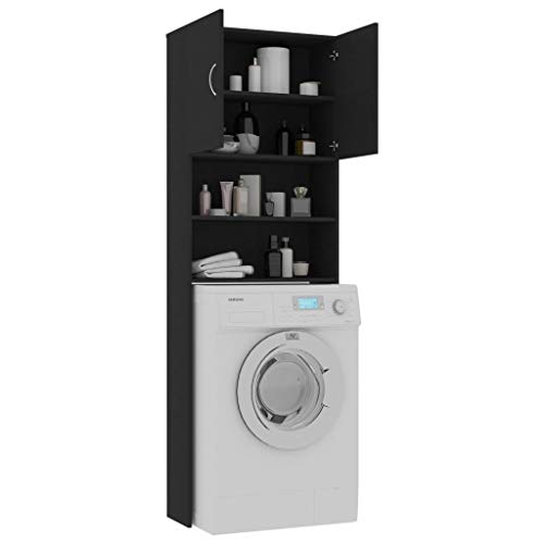 Festnight Mobile per Lavatrice, Mobiletto per Bagno in Truciolato Nero 64x25,5x190 cm