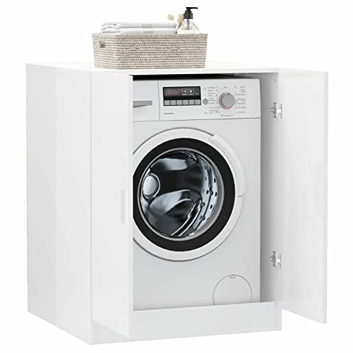 Festnight Mobile Lavatrice Salvaspazio, Scaffale sopra Lavatrice, Mobile per Lavatrice 71x71,5x91,5 cm Bianco Lucido