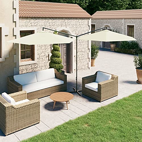 Festnight Ombrellone Decentrato, Ombrellone Doppio, Ombrellone da Giardino, con Palo in Acciaio Sabbia 600 cm