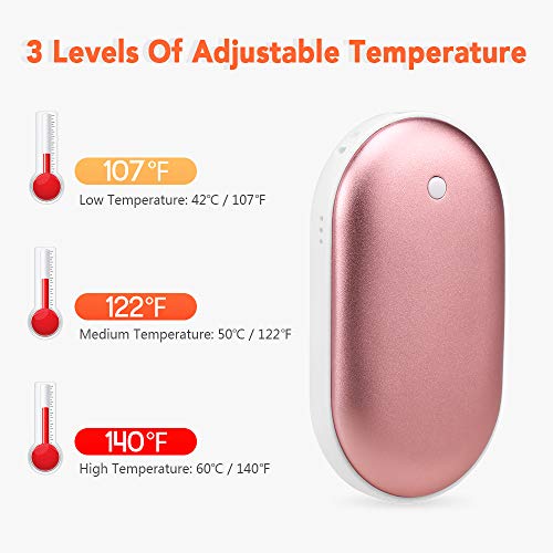 Festnight Scaldamani Ricaricabili Scaldino Tascabile da Escursionismo Invernale Regalo Hand Warmer, Power Bank 5200mAh USB 3 Livelli di Temperatura e Laterale Doppio, Riscalda Rapidamente e Sicurezza