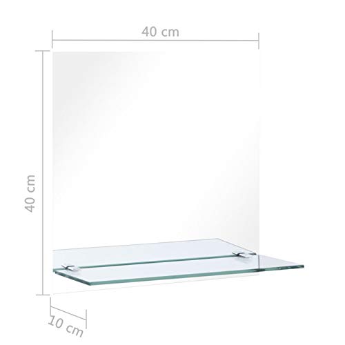 Festnight Specchio da Parete con Mensola in Vetro Temperato,Specchio a Muro con Mensola Vetro Temperato,Specchio per Bagno,Specchio Camera da Letto 40x40 cm