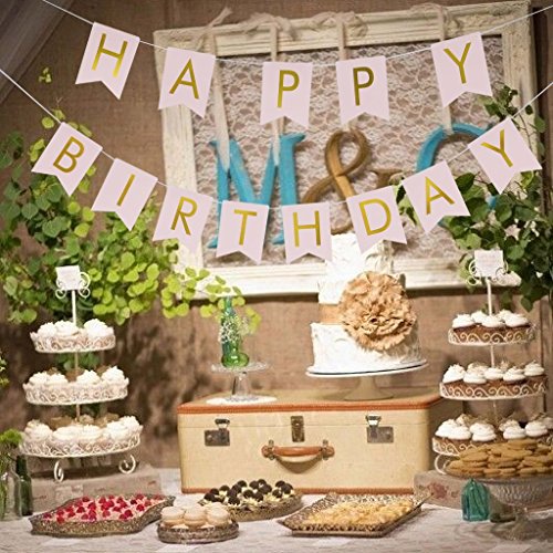 Festone, bandierina da appendere, striscione decorativo con scritto "Happy Birthday" (lingua italiana non garantita) per feste, Veewon