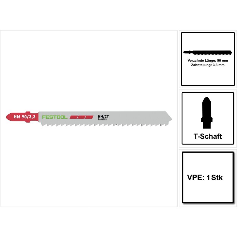 Dotazione: - 1x Festool HM 90/3,3 Lama seghetto Plastics Laminate ( 204269 ) Descrizione prodotto: La lama da seghetto alternativo Plastics Laminate convince per la sua lunghissima durata, grazie al carburo di tungsteno. È progettato per laminati ("High Pressure Laminate"), gesso e pannelli legati con resina melamminica ("Trespa"). Con la lunghezza del dente di 90 mm e il passo del dente di 3,30 mm si può lavorare uno spessore massimo del pezzo di 30 mm. Lo standard di qualità Festool garantisce una lunga durata. Dati tecnici: Lunghezza del dente: 90 mm Passo del dente: 3,3 mm Spessore massimo del pezzo: 30 mm Attacco: T-Shaft Quantità: 1 pezzo