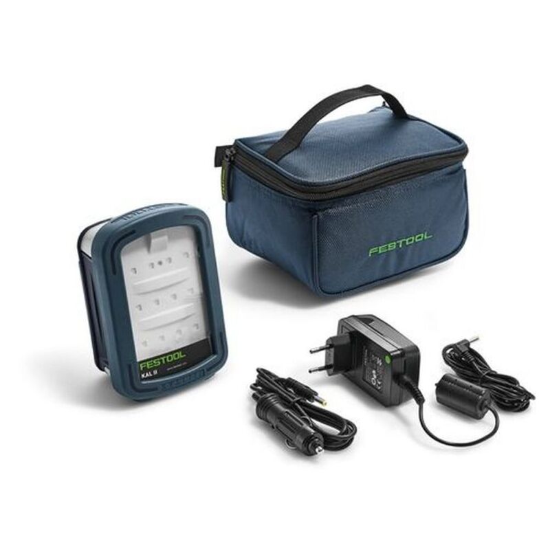 Festool Lampada da lavoro KAL II SYSLITE - 500721 L'utensile in primo piano. Vantaggi e benefici Eccezionale potenza luminosa, grazie ai 12 LED ad alte prestazioni Di lunga durata e robusta grazie al corpo resistente a rottura Massima durata di impiego in aggiunta alla batteria interna possono essere utilizzate le batterie Festool 18 V (eccetto le batterie Ergo). L'alimentatore di rete di 230 V e il cavo per accendisigari ampliano le opzioni di ricarica a disposizione Struttura compatta - flessibile da posizionare senza pericolo di inciampare nei cavi Angolo di diffusione estremamente largo di 170° In più le batterie Festool hanno una durata di lavoro ancora più lunga Guscio con impugnatura isolato termicamente per proteggere utilizzatore e luce Durata massima grazie alla potente batteria al litio da 7,2 V / 2,9 Ah Principali applicazioni Lavoro preciso grazie all'illuminazione ampia e omogenea di superfici medio-grandi Dotazione alimentatore da auto, alimentatore a rete 230 V, borsa