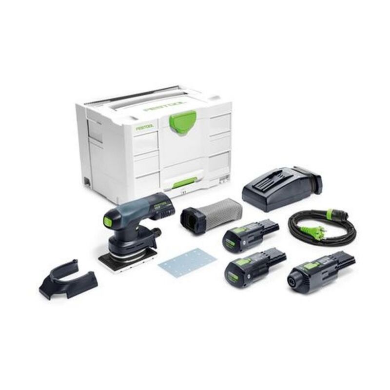 Festool Levigatrici RUTSCHER a batteria RTSC 400 Li 3,0 I-Set - 577681 L'ergonomica levigatrice orbitale monomanuale. A batteria. Vantaggi e benefici Compatta ed ergonomica: senza cavo e tubo flessibile, con ergonomia perfetta, altezza costruttiva contenuta e solo 1,4 kg di peso Potente: la batteria Ergo da 18 V in combinazione con il motore EC-TEC brushless garantisce una potenza paragonabile a quella degli utensili a filo Senza interruzioni: grazie alle batterie da 3,0 Ah che durano più di quanto serve a caricarle Funzionamento illimitato: per un funzionamento elettrico illimitato, la batteria si può sostituire con un adattatore di rete plug it (compreso nel set e disponibile come accessorio) Senza polvere e salutare: con il sacchetto raccoglipolvere Longlife in tessuto non tessuto in fibra di poliestere estremamente duraturo o in combinazione con un'unità mobile d'aspirazione Meno lavori di ripresa: PROTECTOR per una levigatura delicata lungo le superfici di finestre, cornici e