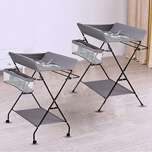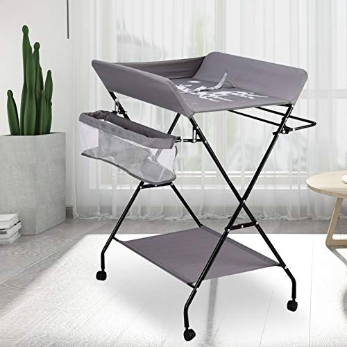 Fetcoi - Fasciatoio portatile con fasciatoio e cintura di sicurezza, combinazione con tre ripiani, carico massimo 25 kg (grigio, con ruote)
