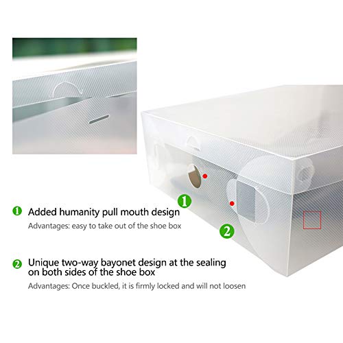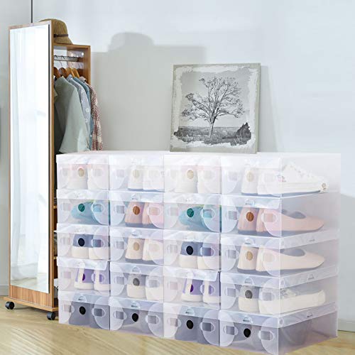 Fetcoi 20 scatole per scarpe, impilabili, 28 x 18 x 10 cm, in plastica, trasparenti, traspiranti
