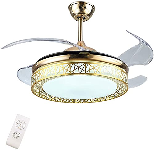 Fetcoi Ventilatore da soffitto da 42 pollici con illuminazione e telecomando, 3 velocità del vento e 3 temperatura di colore, 4 pale retrattili, colore oro