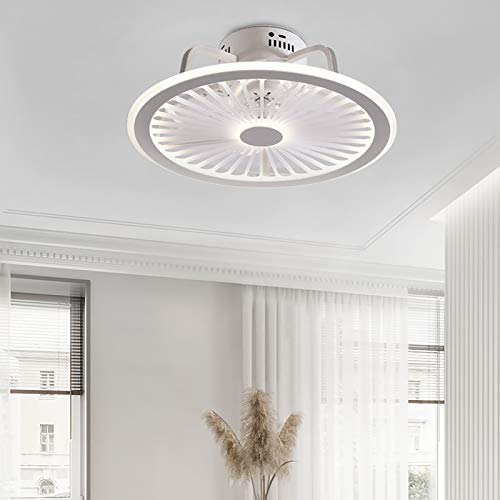 Fetcoi Ventilatore da soffitto a LED rotondo in acrilico, 50 x 18 cm, con illuminazione, moderno, dimmerabile, ultra sottile, silenzioso, semplice lampada per fan