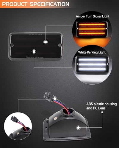 【Materiale durevole】I nostri indicatori di direzione a led switchback per Jeep Wrangler TJ sono costituiti da un guscio in plastica ABS durevole e da una lente in PC dura e affumicata, con caratteristiche antigraffio e non sbiadiscono anche dopo una lunga esposizione. Durata di vita di oltre 55000 ore.