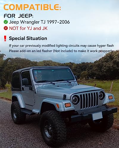 【Design per Jeep】Indicatori di direzione anteriori sequenziali per Jeep Wrangler TJ 1997 1998 1999 2000 2001 2002 2003 2004 2005 2006. Sostituisce gli OEM # 55155629AC, 55155628AC, 55157033AA, 55156488AB.