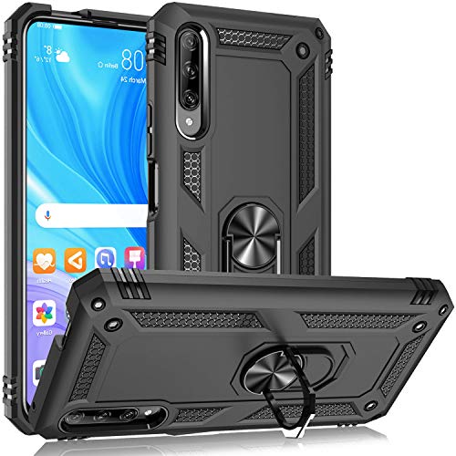 Fetrim Custodia per Honor 9X PRO, Cover PC TPU Cassa Shell Supporto di Anello Rotante Case per Huawei P Smart PRO 2019/Honor 9X PRO Nero