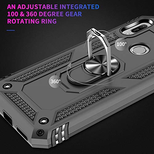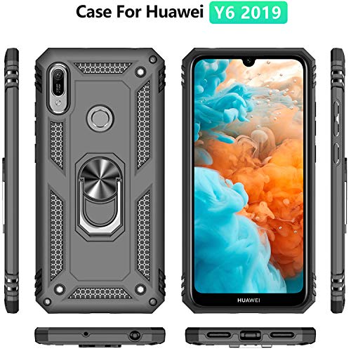 Fetrim Custodia per Huawei Y6 2019, Cover PC TPU Cassa Shell Supporto di Anello Rotante Case per Huawei Y6 2019/Y6 Prime 2019/Y6S 2019/Honor 8A Nero