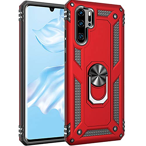 Fetrim Custodia per Huawei P30 PRO, Cover PC TPU Cassa Shell Supporto di Anello Rotante Case per Huawei P30 PRO Rosso