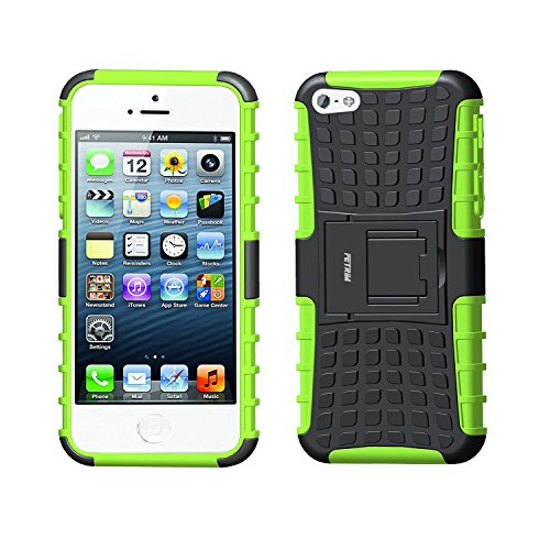 Fetrim Custodia iPhone 5S, cover supporto anti Case, TPU Plastica Bumper Rugged armatura ultra protezione Copertura Cassa Shell Caso per iPhone 5/5S/Se - verde