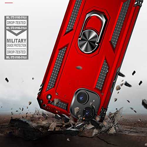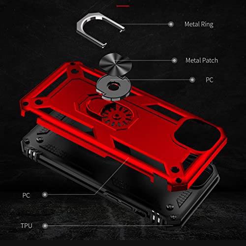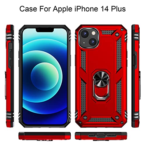 Fetrim Custodia per iPhone 14 Plus, Cover PC TPU Cassa Shell Supporto di Anello Rotante Case per Apple iPhone 14 Plus Rosso