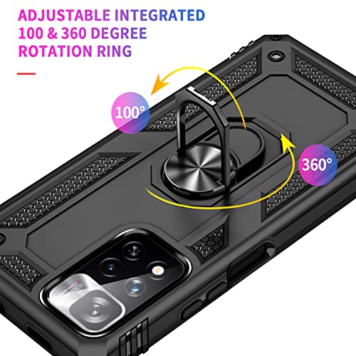 Fetrim Custodia per Redmi Note 11 Pro, Cover PC TPU Cassa Shell Supporto di Anello Rotante Case per Redmi Note 11 Pro Nero