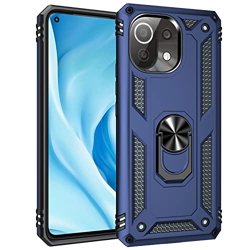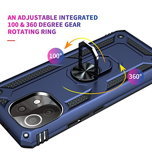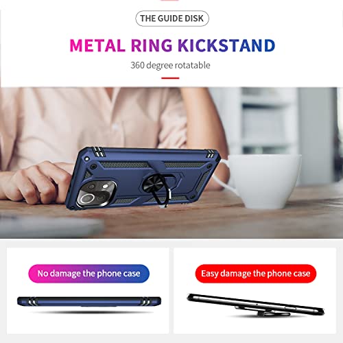 Fetrim Custodia per Xiaomi MI 11 Lite, Cover PC TPU Cassa Shell Supporto di Anello Rotante Case per Xiaomi MI 11 Lite/11 Lite 5G Blu Navy