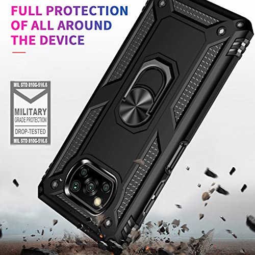 Fetrim Custodia per Xiaomi Poco X3 Pro, Cover PC TPU Cassa Shell Supporto di Anello Rotante Case per Xiaomi Poco X3 PRO/Poco X3 NFC/Poco X3 Nero