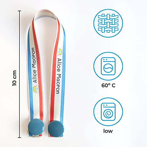 Misure: 15 mm di larghezza x 20 cm di lunghezza. Adatto per appendere giacche, camici, cappotti, zaini. Il nome viene stampato due volte in modo che sia visibile sul lato e sul lato del nastro. Scegli tra 100 icone e personalizzale con il disegno che piace di più a tuo figlio o tua figlia. Le etichette perfette per non perdere le giacche dei tuoi piccoli.
