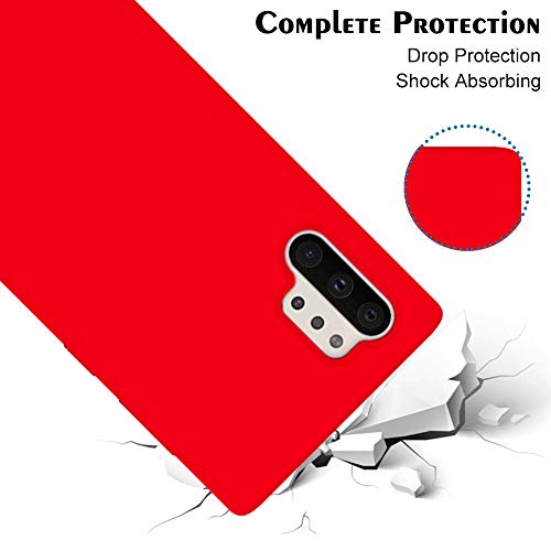 Feyten Cover per Samsung Galaxy Note 10 Plus [con Vetro Temperato], Custodia Gomma Gel Silicio Liquido con Fodera Microfibra Morbida Caso Silicone Sottile Protettiva Cover (Rosso)