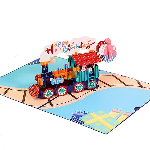 Fezf Biglietto Auguri Compleanno,Biglietti Auguri Compleanno,Cartolina d'auguri Tridimensionale Trenino 3D, Biglietto d'Auguri Pop-Up, Regalo Carino, Regalo a Sorpresa Di Compleanno Per Bambini