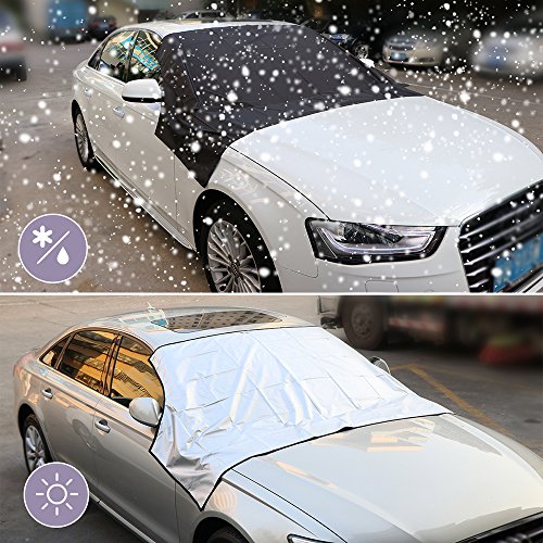 Si adatta alla maggior parte delle auto, camion e SUV. La copertura da neve per parabrezza auto è facilmente pieghevole per essere riposto nel bagagliaio o nei sedili posteriori del veicolo.