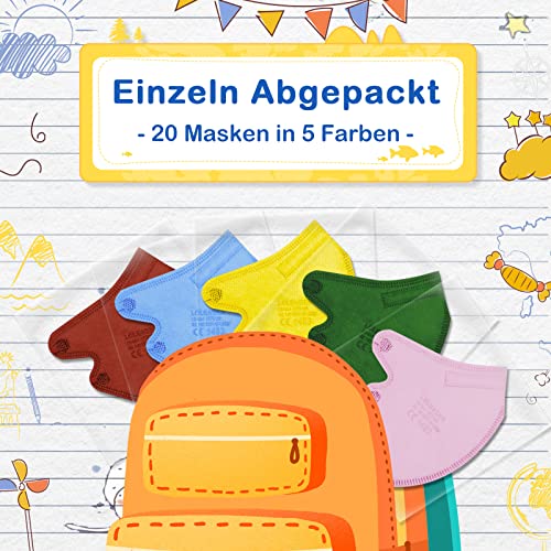 FFP2, maschere colorate di piccole dimensioni, confezione singola, comode maschere protettive, 5 strati di filtraggio, pieghevoli, per piccoli visi, 20 pezzi