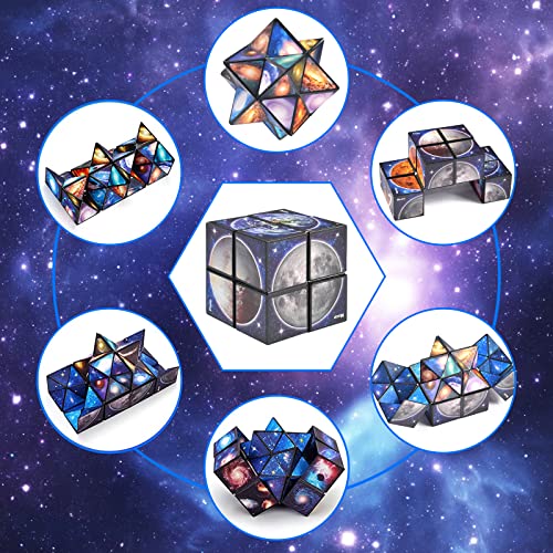 【Cubo stellare 2 in 1】: il cubo stellare 2 in 1 contiene un cubo stella e un cubo galassia, che non solo possono essere combinati in un'unica forma, ma possono anche essere divisi in due cubi diversi. È possibile creare molte forme diverse ed esercitare il pensiero logico e le abilità spaziali 3D del bambino.