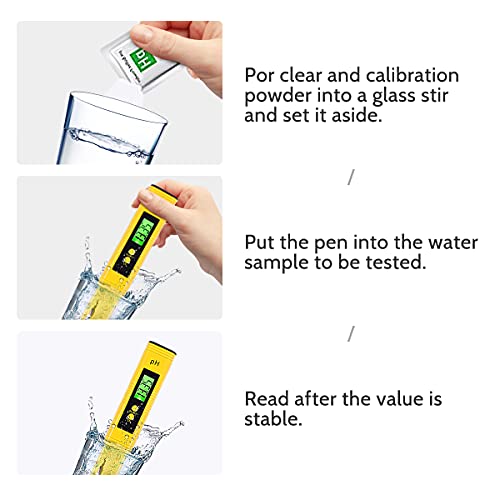 ●[Ampia gamma di applicazioni] Il pHmetro ha una vasta gamma di applicazioni e può essere utilizzato nei seguenti campi: acquari, pesca, piscine, piscine, laboratori scolastici, acqua di rubinetto, sorgenti termali, liquidi diversi avranno risultati di misurazione diversi .