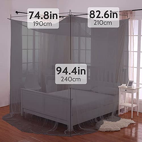 FGen Zanzariera Quadrata, Zanzariera Baldacchino, Universale Grande Zanzariera Letto, 4 Aperture, Facile Installazione, Poliestere, per Letto di Tutte le Dimensioni, Campeggio e Famiglia Usati-Nero