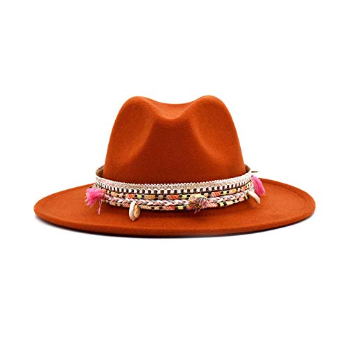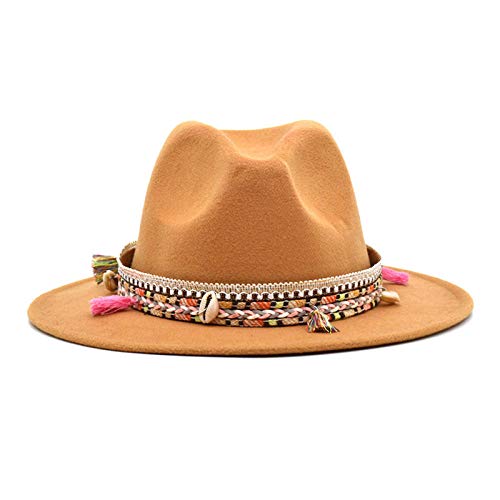 FGHOMEAQYZ 1 Cappello da Jazz a Tesa Larga da Uomo, Cappello a Cilindro di Lana, Cappello da Donna in Feltro-Camel_56-58cm