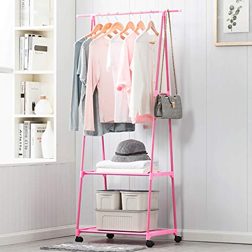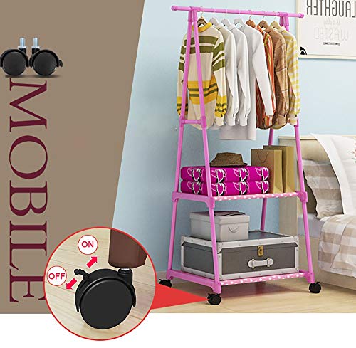 FGHUF Stand Appendiabiti in Metallo con Ruote Appendiabiti con 2 Scaffali, Mobile Appendiabiti Ingresso Attaccapanni da Terra Ingresso Soggiorno Camera da Letto, 55 * 42 * 160cm