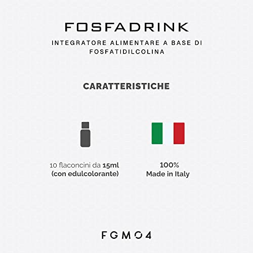 FGM04 FosfaDrink Brucia Grassi - Integratore Alimentare - Naturale a Base di Fosfatidilcolina - 1 confezione con 10 Flaconcini Monodose da 15 Ml