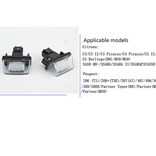 Fgyhtyjuu Luce Targa a LED Luce per Auto 1 Coppia 12V Compatibile con Citroen C3-C5 Peugeot 206/207/307/308/406/407
