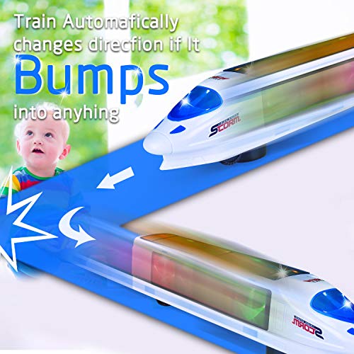 【GIOCATTOLO INTERESSANTE】: I bambini possono guardare il treno avanzare, cambierà direzione e scapperà quando sbatterà contro qualcosa. indietro e ruota di 360 gradi su qualsiasi superficie piana. per resistere a sbattere contro muri e infinite ore di gioco