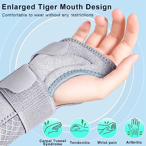 Fhioevt Tutore Polso Traspirante Polsiera Ortopedica Tutore Tunnel Carpale Destro con Stecca in Metallo Fascia per Polso Regolabile per Sindrome del Tunnel Carpale, Slogature, RSI e Tendinite (S/M)