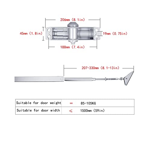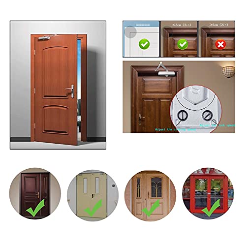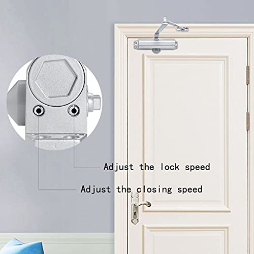 Velocità regolabile, la velocità di chiusura della porta può essere regolata da 2 valvole di regolazione, con funzione di chiusura ammortizzata del buffer, silenzio durante la chiusura della porta, nessuna collisione, protegge meglio la porta e la serratura